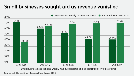 Wells Fargo, JPMorgan Chase and others cut back on 7(a) lending to focus on originating Paycheck Protection Program loans. Smaller banks such as Live Oak and Byline gained market share by targeting niche industries and originating bigger loans.
