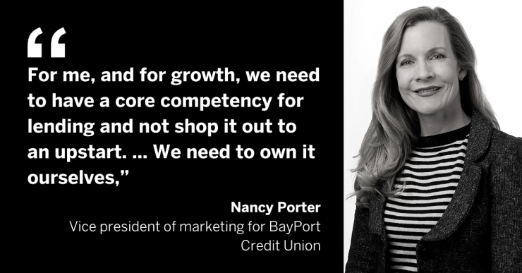 "For me, and for growth, we need to have a core competency for lending and not shop it out to an upstart. … We need to own it ourselves," Porter said.