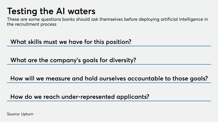 These vendors all count financial institutions among their clients. Still, while technology can help speed up certain processes and emphasize skills over less meaningful data, human oversight is still vital in recruiting, attracting and retaining diverse talent.