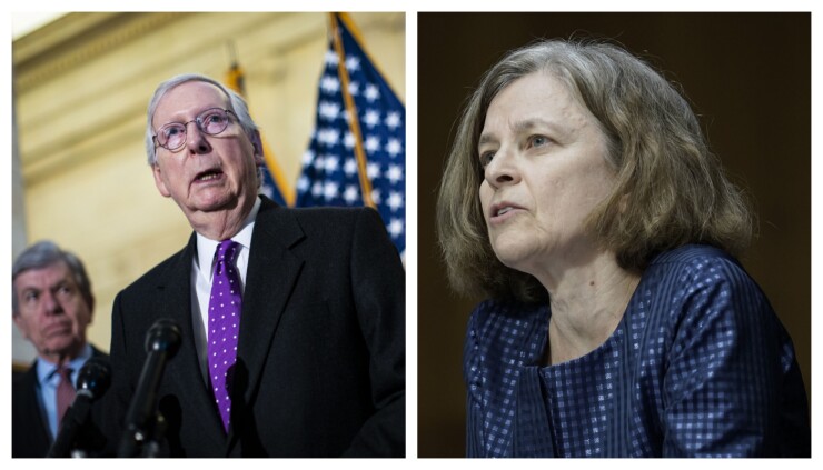 Brown’s success may hinge on Raskin’s ability to meet with committee Republicans and provide satisfactory answers to their questions. They want to know whether she would interfere with oil and gas companies’ access to credit and whether she played any improper role in the granting of a Fed master account to Reserve Trust, a fintech on whose board she sat from 2017 to 2019.
