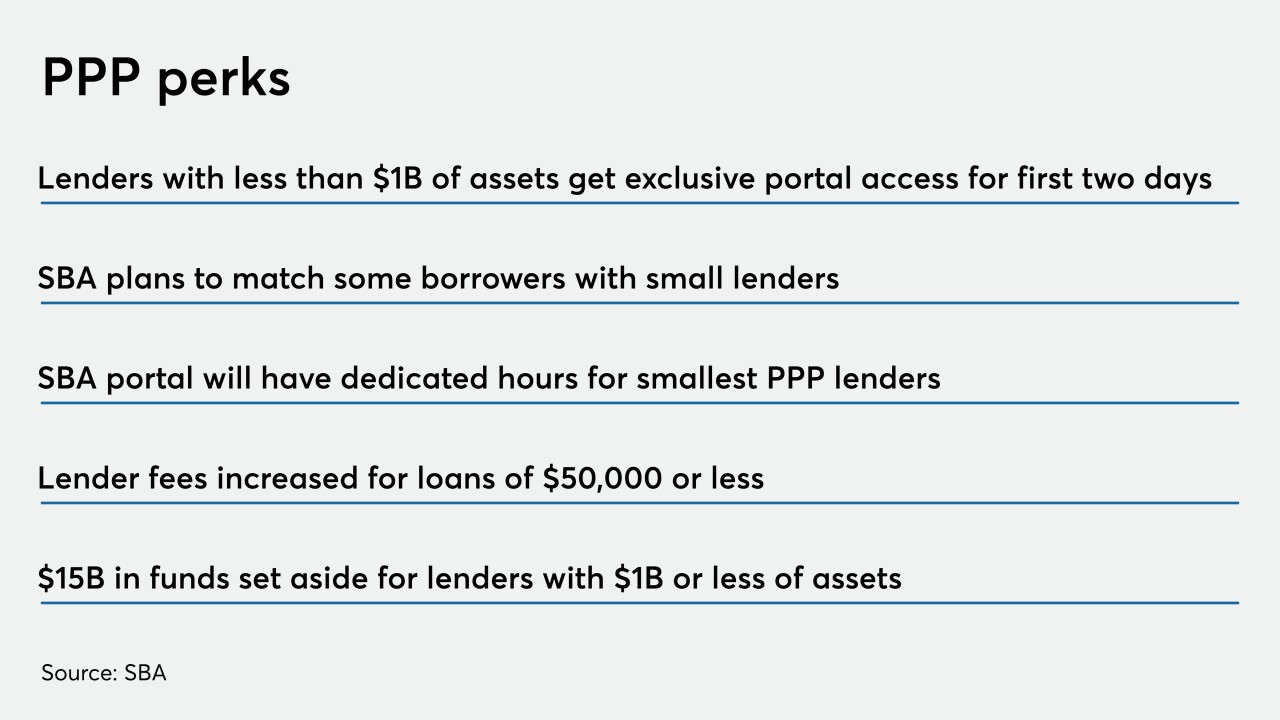 Community banks will have access to allocated funds and at least two days of exclusive portal access when the Small Business Administration relaunches the Paycheck Protection Program.