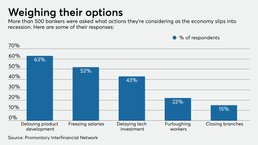 Bracing for a prolonged economic slowdown, many community bankers say they are considering a number of belt-tightening measures, including freezing salaries and delaying investments in technology and product development, according to a survey by Promontory Interfinancial Group.