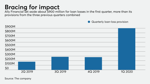 After more than tripling its loan-loss provision, the $182 billion-asset company became the first large U.S. bank to report a quarterly loss as a result of the coronavirus pandemic.