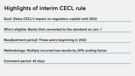 Lawmakers and regulators opted to delay compliance for banks that have implemented the credit loss standard, sparing them near-term capital hits.