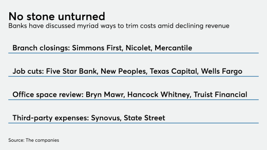 With the coronavirus pandemic intensifying and hopes for a quick economic recovery fading, banks large and small are reducing headcounts, shuttering branches, shedding office space and generally trying to trim expenses wherever they can.