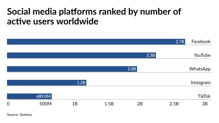 Those traditional platforms like Facebook and Twitter are bigger — Facebook has 2.7 billion users worldwide and Twitter has