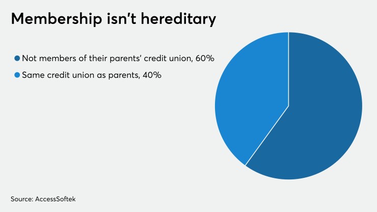 A new report from Access Softek found that more than half of the adult children of credit union members over age 65 are not members of their parents’ credit union.