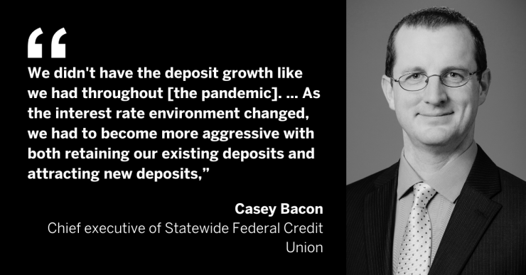 When Casey Bacon, chief executive of Statewide Federal Credit Union in Flowood, Mississippi, was facing the same drop-off in new deposits, he leaned on fintech partnerships to boost new member acquisition and, in turn, deposits.
