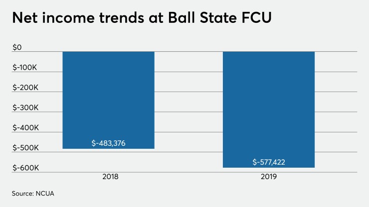 At nearly $90 million in assets, Ball State FCU posted a loss of more than $577,000 last year, according to call report data from the National Credit Union Administration. It lost more than $483,000 in 2018. The credit union had more than $850,000 in charge-offs in 2019, nearly half of which was in used car loans. An emailed statement from the credit union noted that “A concentrated effort has been made over the last four years to address weaknesses in the indirect lending portfolio,” which on aggregate has been reduced by more 40% ($11 million) during that time. Ball State also took steps to improve the credit quality of its indirect portfolio, to the point where more than three quarters of indirect borrowers now have A or B credit.