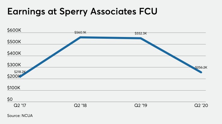Sperry Associates FCU earned about $256,000 during the first half of this year, a 53% decline from the first half of 2019.