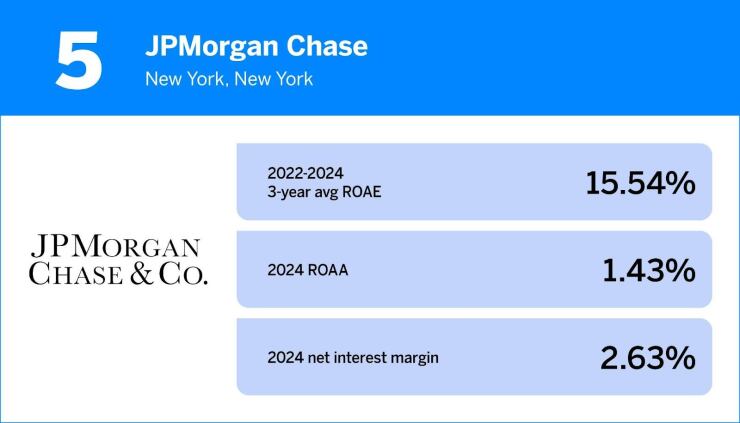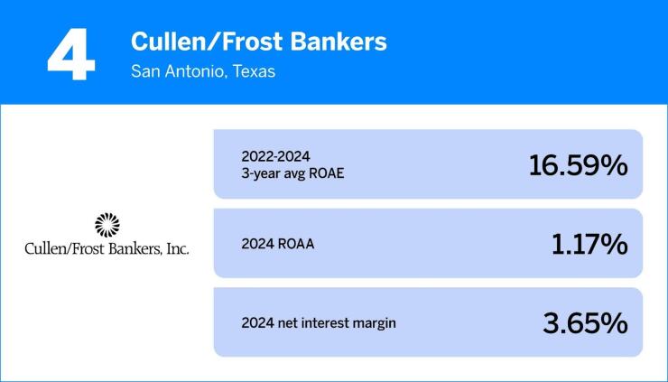 The list, which is based on year-end data for 2024, is compiled by the consulting firm Capital Performance Group. Rankings are based on banks' three-year average returns on average equity.