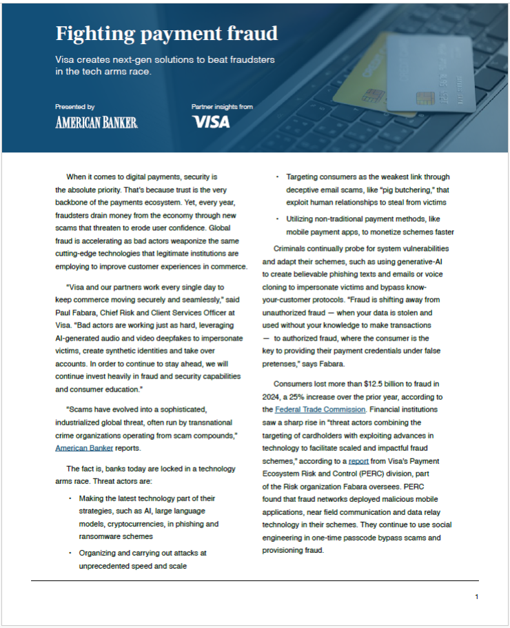 To proactively detect and dismantle complex scams before they cause severe harm, Visa's Scam Disruption Practice has network controls in place like an invisible shield against hackers —leveraging countervailing measures like 3DS standards and passkeys to decline bad transactions. Last year, Visa blocked $40 billion in fraud across its network. Click to learn how Visa continues to innovate to keep transactions secure, so users stay confident in their purchases.