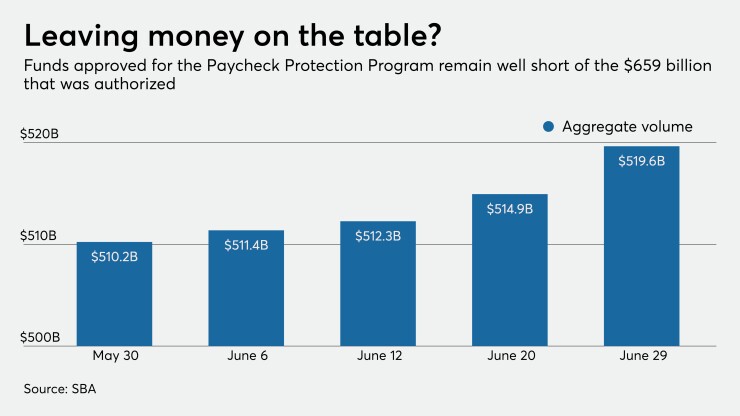 A growing number of lenders and financial industry trade groups have called on the SBA and the Treasury to settle questions around forgiveness by automatically forgiving smaller Paycheck Protection loans.