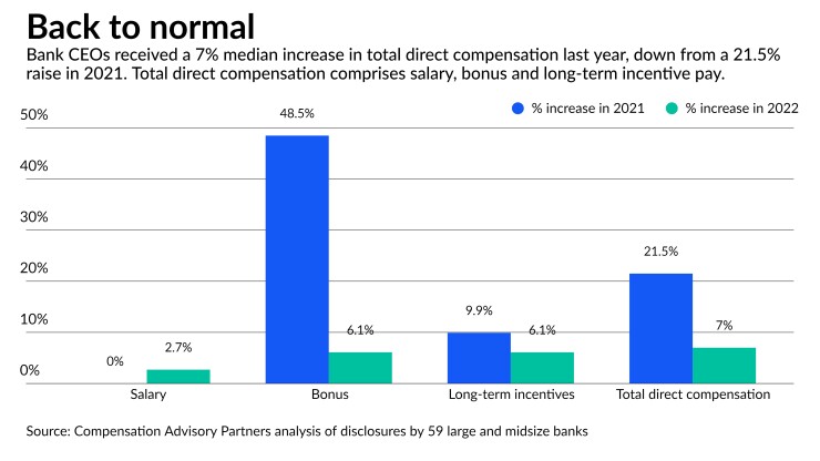 "When you go to 2022, it was probably more of a normal year in terms of profitability, and that's part of the reason why you don't see such big increases in pay year over year," said Shaun Bisman, a principal at Compensation Advisory Partners.