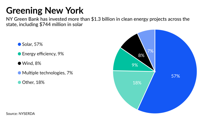 NY Green Bank, an 8-year-old division of the New York State Energy Research and Development Authority, has previously been funded by surcharges on ratepayers' electric bills. Through June, it had committed $1.6 billion into residential, commercial, agriculture and industrial infrastructure clean energy projects across the state, Kessler said.