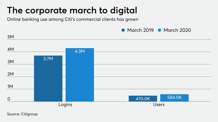 As companies around the world enacted continuity plans to keep running during the pandemic while employees were scattered remotely, corporate clients of Citi’s Treasury and Trade Solutions unit ramped up their use of its online banking platform.
