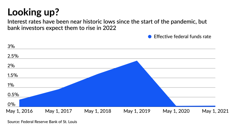 Investors have pumped more than $30 billion into financial stocks this year. The prospect of higher rates comes on top of banks’ robust credit quality, higher first-quarter profits and broad expectations that banks will emerge from the pandemic in good financial health.