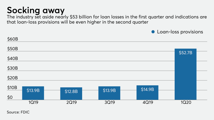 Even with some clarity on the deferral front, Bonner said, most banks would be wise to brace for continued economic weakness and a choppy recovery. Provisions soared in the first quarter. He anticipates further increase for many banks in second-quarter results. He noted that Federal Reserve officials recently predicted that unemployment, currently above 13%, could still hover nearly 10% by the close of 2020.