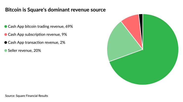 Square's bet on crypto keeps paying off: The Cash App business, fueled by bitcoin trading, generated the bulk of the company’s revenue in the first quarter.