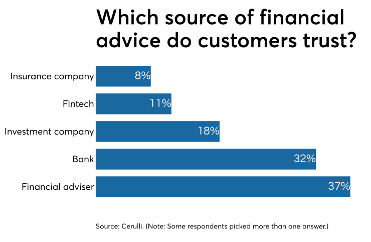 Furthermore, Roy noted a Cerulli study that found three in 10 investors would trust a bank to provide advice — on par with those customers that would trust a financial adviser (37%).