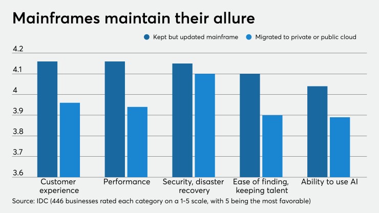 IBM is seeing an increase in mainframe sales. And a recent survey conducted by IDC found that people who keep and modernize their mainframes are happier with system performance than those that have switched to cloud computing.