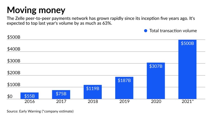 "This thing is a freight train that keeps going," said Al Ko, CEO of Early Warning. "When you start to think about the scale of Zelle, I can say with confidence that this year we will move about a half trillion dollars and about 2 billion transactions."