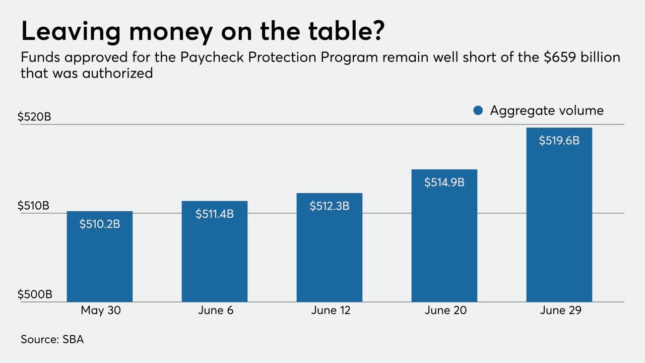 The Paycheck Protection Program had more than $100 billion in funding left as of last Saturday, with only days remaining until the Small Business Administration stops taking new applications on June 30.