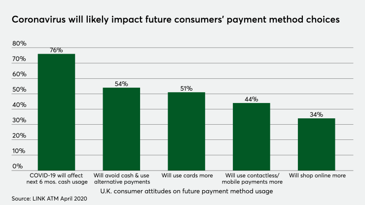 “The fact people are using less cash shouldn’t come as a surprise because with cafes, pubs, restaurants and some shops closed, people are travelling less and there are far fewer opportunities to spend in the first place," said John Howells, CEO at LINK in a press release. However, LINK ATMs are still issuing around £1 billion per week to 11 million people. Even if this crisis does lead to less cash use in the longer term, people should be reassured that LINK and its members will continue to ensure good access to all who still rely on it.”