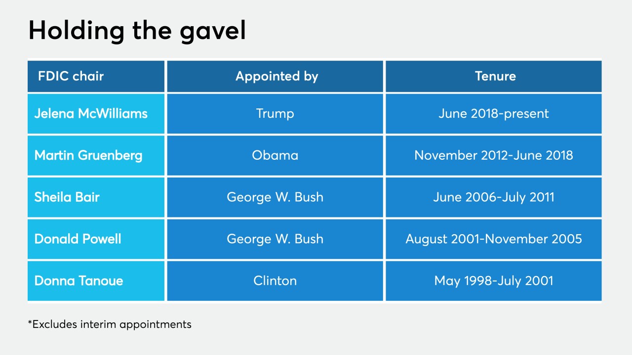 Jelena McWilliams's term as FDIC chair expires in 2023, and she cannot be removed by an incoming president. But if Joe Biden prevails, he may ask her to stay — and if she does, governing a Democratic-majority board would be a very different proposition.