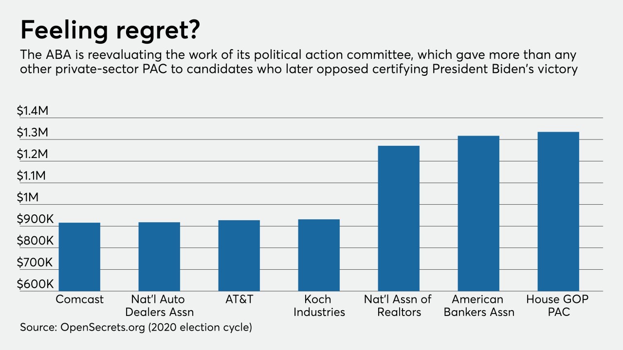Following similar decisions by big banks, the Consumer Bankers Association and Mortgage Bankers Association said they will halt all political contributions to elected officials as some lawmakers face harsh criticism for comments that incited the storming of the U.S. Capitol.