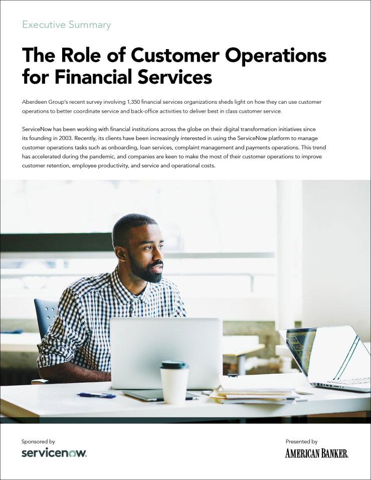 During a recent webinar sponsored by ServiceNow and hosted by American Banker, Omer Minkara, Vice President and Principal Analyst at Aberdeen Group, shared results from a recent survey on how best-in-class companies are leveraging customer operations for maximum impact. Also, Tammi Shapiro, Global Head of Product Financial Services at ServiceNow, shared actual case studies of clients that have made dramatic gains.