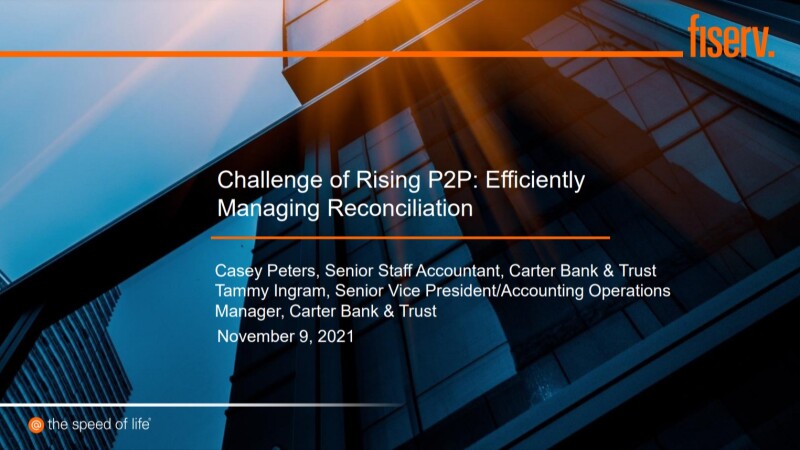 Payments pour into financial institutions from seemingly everywhere – and every penny that comes in or goes out must be tracked and reconciled. As person-to-person (P2P) payments such as Zelle® continue to rise, reconciliation has become even more important to manage. Fortunately, automation can create greater efficiencies, stronger internal controls and better visibility.