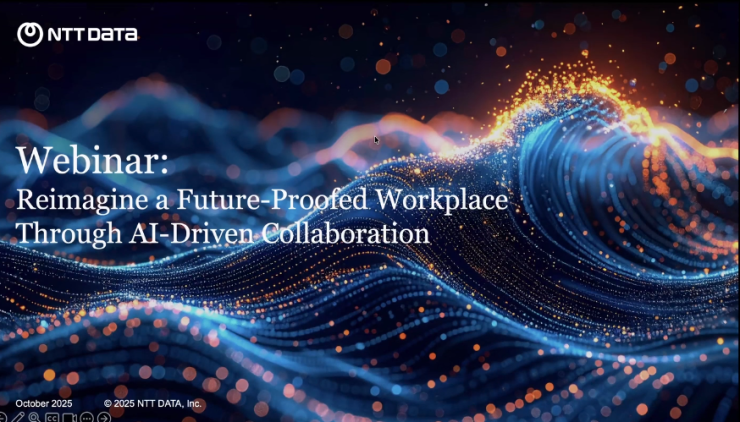 Listen to Vishal Brown, Global Leader, Digital Workplace Services with NTT DATA and Michael Tryon, Vice President, Americas Collaboration Solutions at Cisco talk about reimagining a future-proofed workplace through AI-Driven Collaboration in this on-demand webinar.