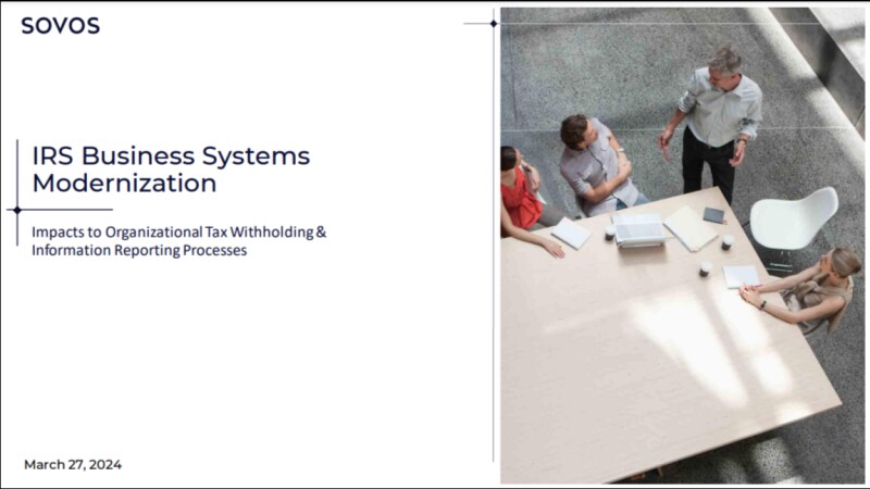 Discover the impacts of continued IRS modernization on your organization and its tax information reporting processes. In this webinar, Wendy Walker, Solution Principal at Sovos, discuss: